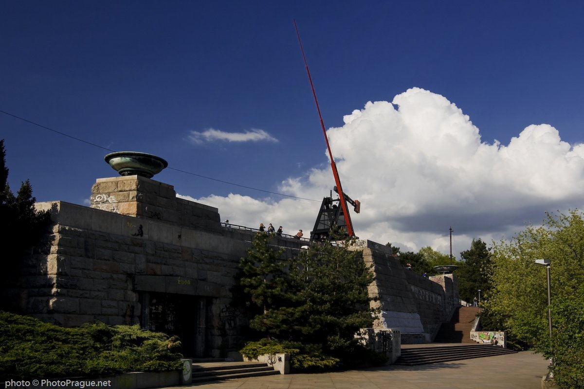 El parque está dominado por un metrónomo rojo, erigido en el lugar en donde se alzó entre 1955 y 1962 el conjunto escultural más grande de Europa: el monumento a la historia de Stalin, conocido popularmente como “la cola de la carnicería”. Sin embargo, esta estatua de piedra no duró mucho en este emplazamiento privilegiado, ya que tras la crítica de Kruschev al culto de la personalidad de Stalin, los camaradas checoslovacos decidieron dinamitar el monumento. Desde 1991, el pedestal hasta entonces desierto, fue ocupado por un metrónomo gigante llamado la “máquina de viajar en el tiempo”. Esta instalación, pensada como provisional con motivo de la Exposición Universal de Praga, echó raíces y aquí se ha quedado hasta hoy. La explanada situada detrás del metrónomo ha sido confiscada por los aficionados al skateboard y a los patines.